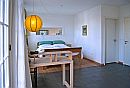 Selbstverständlich verfügen alle Einheiten über ein privates Bad, Kabel-TV, Telefon sowie einen Breitband-Internetanschluss. Eine Suite besteht aus einem Wohnzimmer, einer kleinen Küche und einem Doppelzimmer. Suite E ohne Balkon.